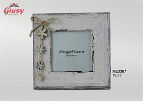 Cornice 10x10 In Legno Bianco Con Bordo Marrone Con Fiorellino In Legno Su Corda