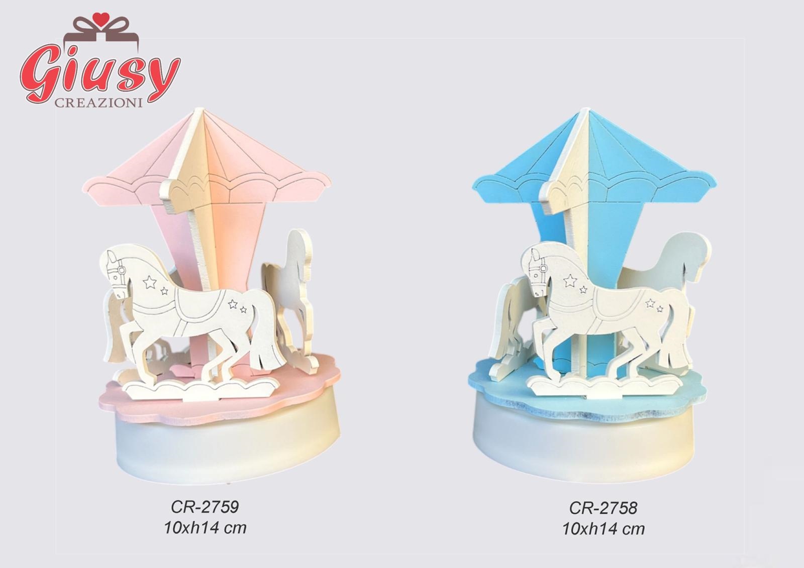 Carillon Giostrina In Legno Color Rosa 10xH.14 Cm Completa Di Scatola