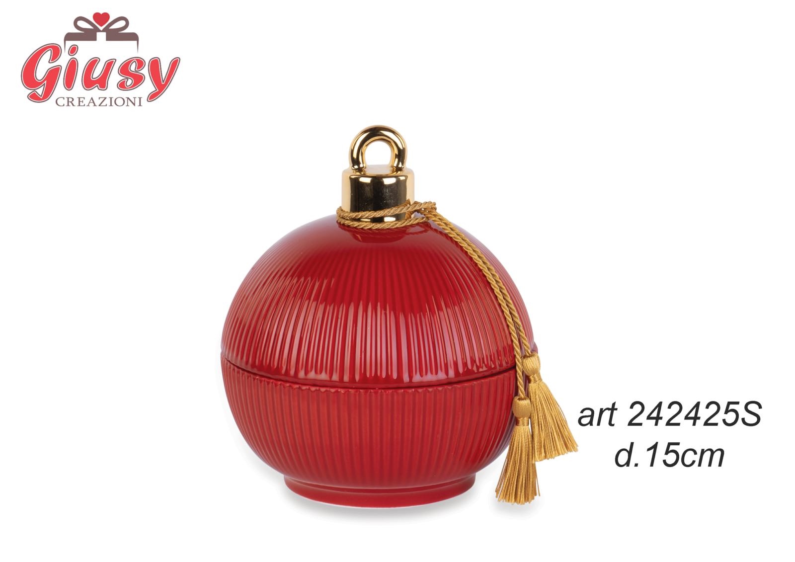 Scatola Sfera Plissè In Porcellana Con Candela Color Bordeaux Diametro 15 Cm 1*8
