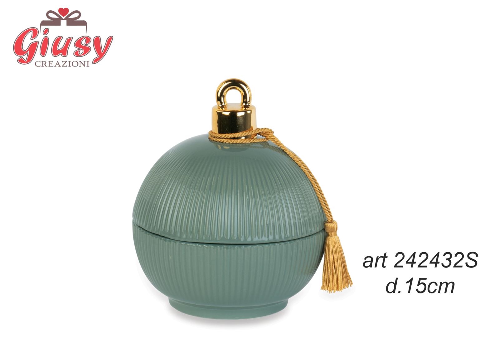 Scatola Sfera Plissè In Porcellana Con Candela Color Verde Salvia Diametro 15 Cm 1*8