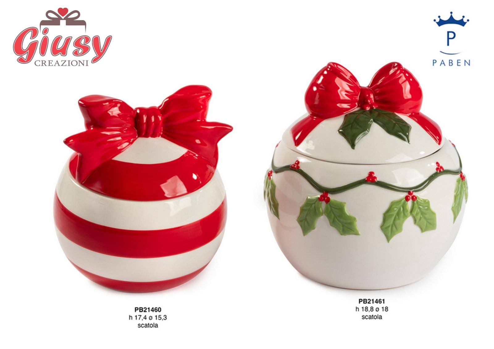 Scatola Sfera Natalizia In Ceramica Con Fiocco H.18,8 Cm 2*12