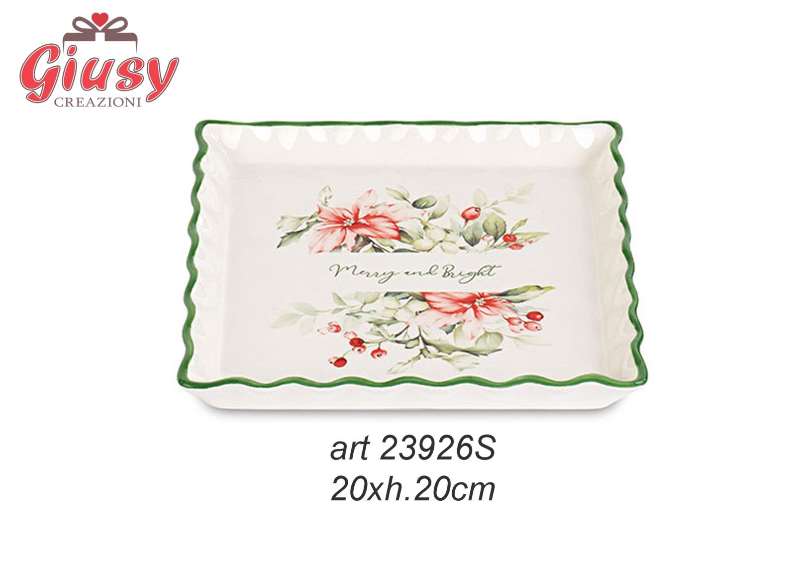 Vassoio Quadrato In Ceramica Decoro Merry And Bright 20xH.20 Cm Completo Di Scatola 4*16