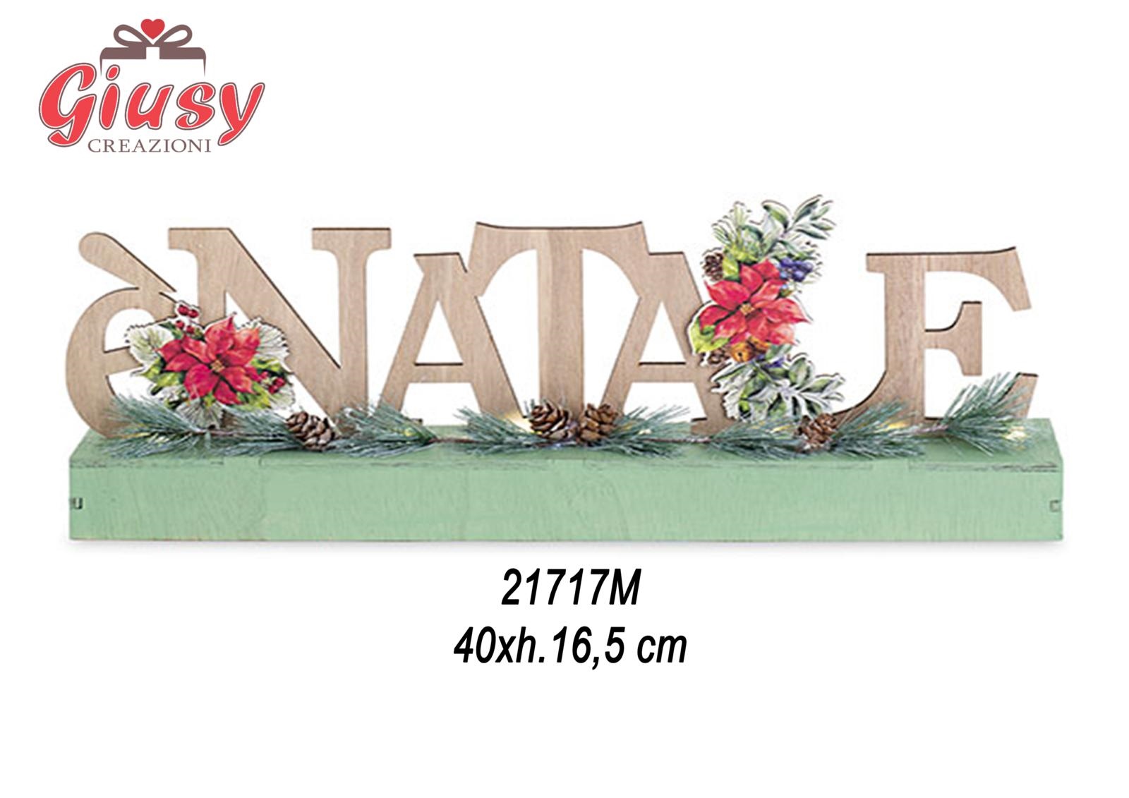 Scritta "E' NATALE" Centrotavola In Legno 40xH.16,5 Cm Con Led 1*24