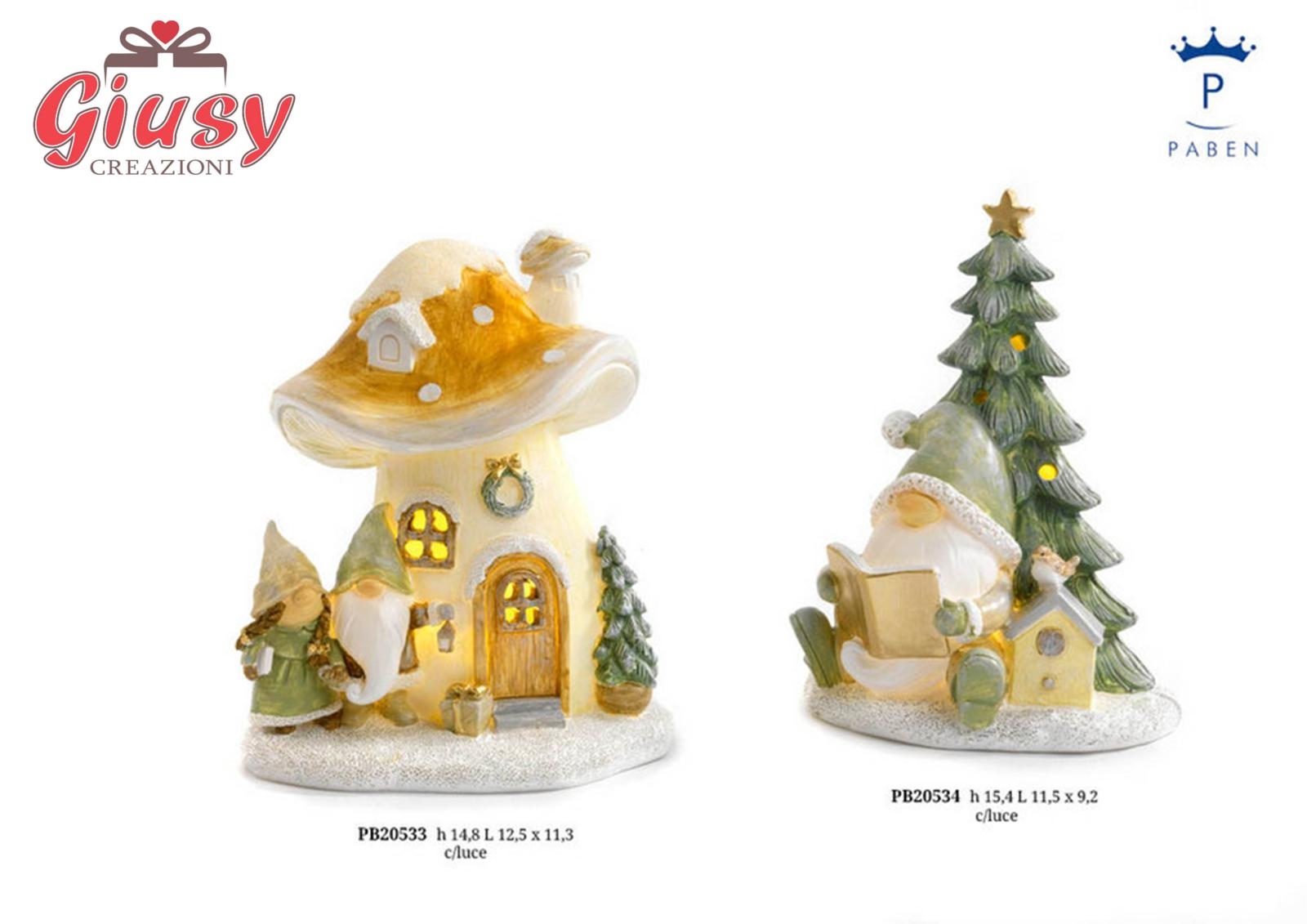 Gnomo Spiritoso Con Albero Di Natale In Resina H.15,4 Cm Con Luce Led 3*12