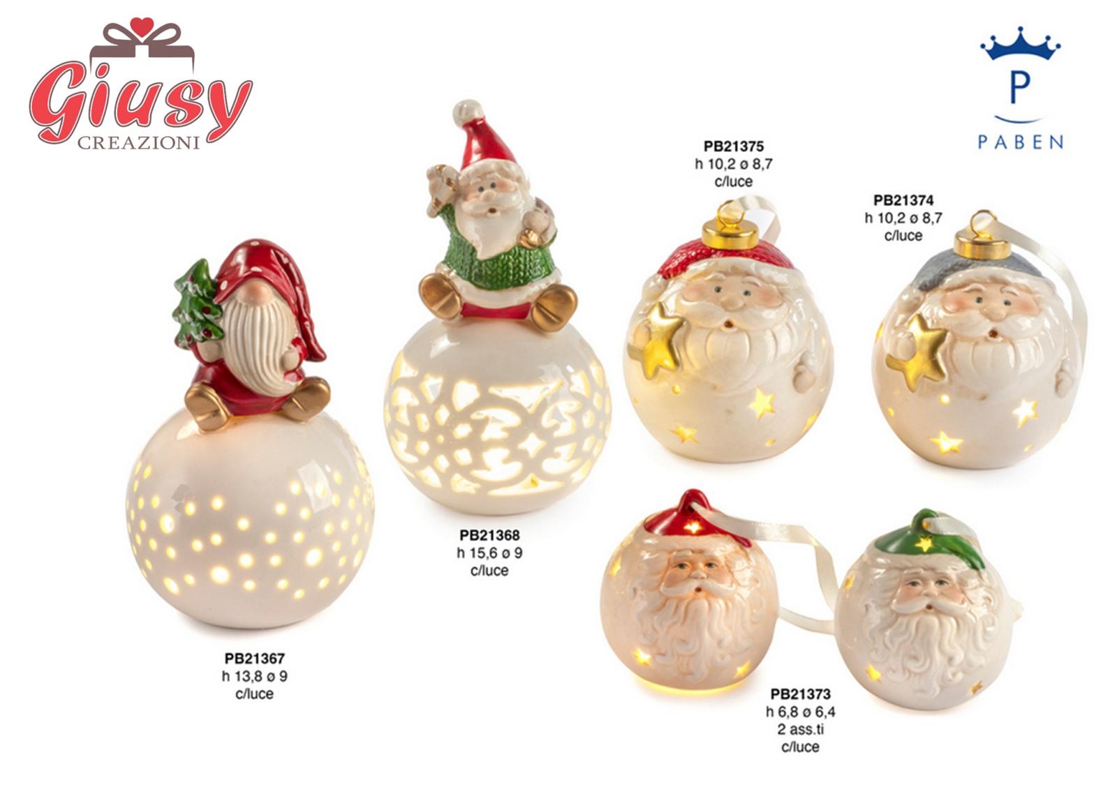 Babbo Natale Spiritoso Su Sfera In Porcellana H.15,6 Cm Con Luce Led 6*48