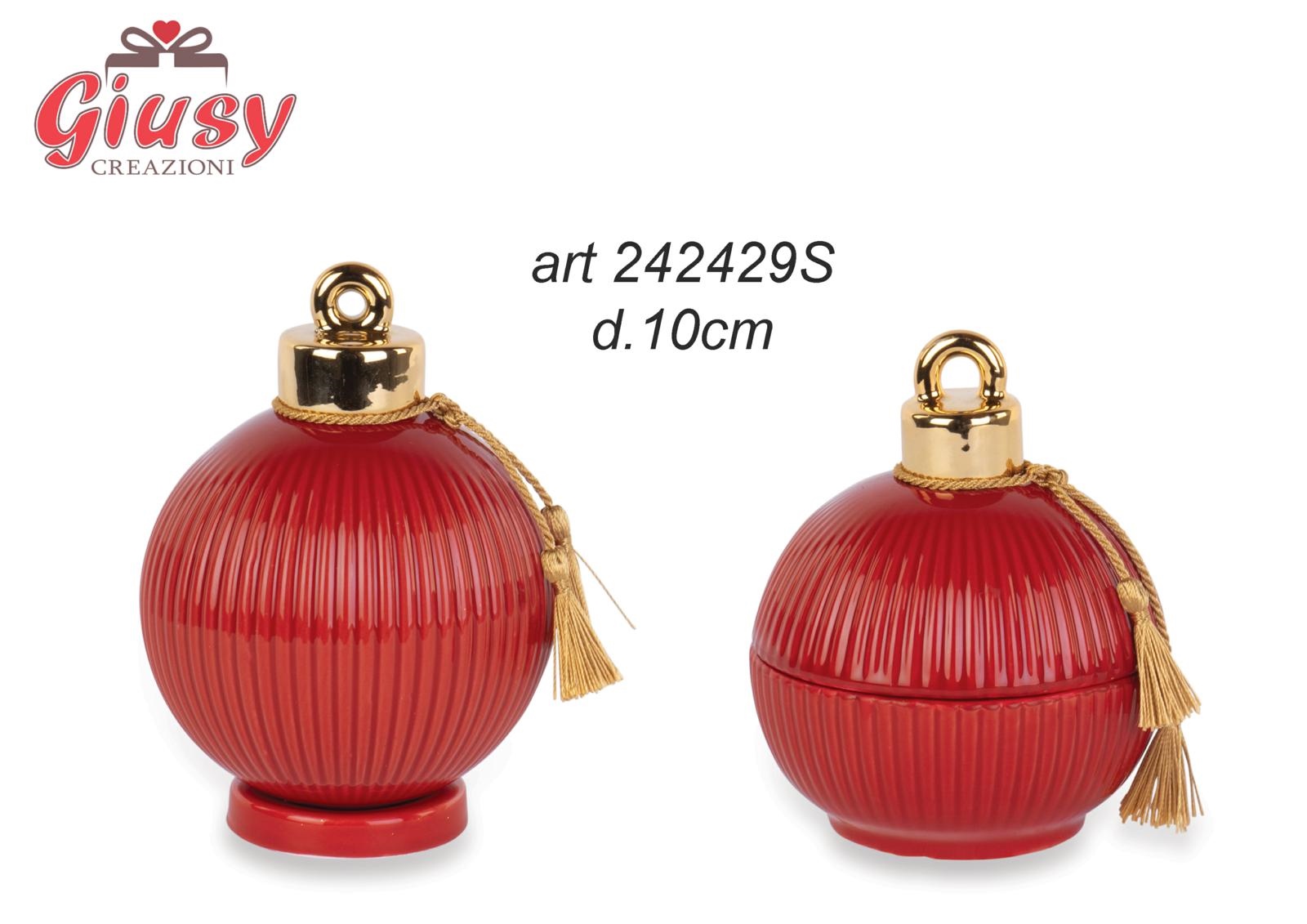 Set Sfera Plissè Con Base D'Appoggio E Scatola Sfera Plissè In Porcellana Con Candela Color Bordeaux Diametro 10 Cm 1*12