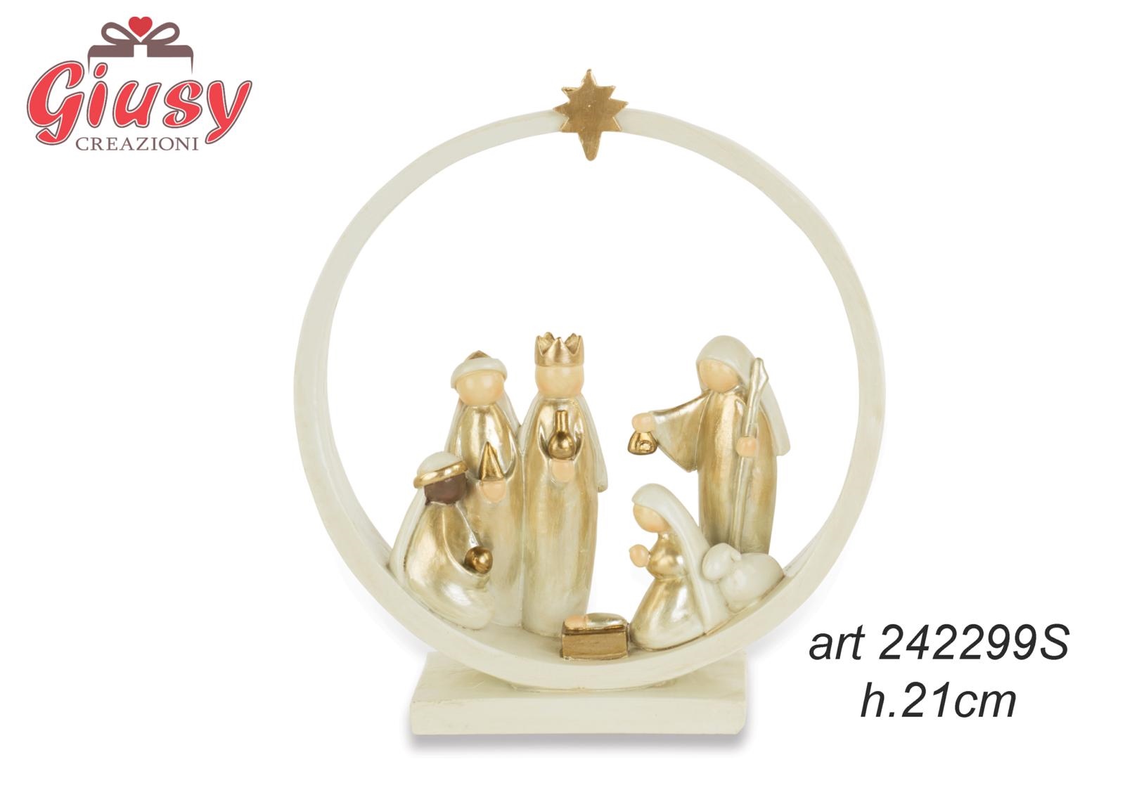 Natività Con Re Magi In Resina Color Panna E Oro H.21 Cm 3*12