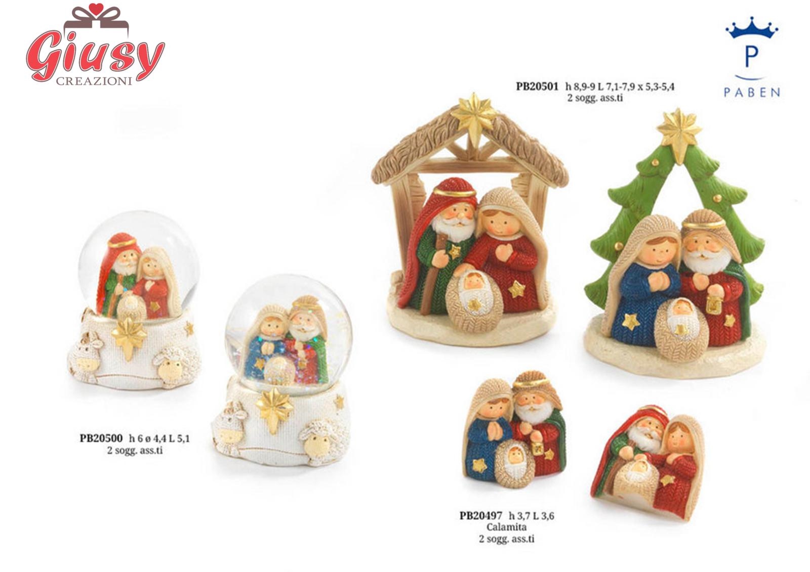 Natività Spiritosa Con Albero E Capanna In Resina Due Soggetti Assortiti, 9 Cm 16*72