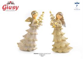 Angelo In Resina Con Alero Di Natale Color Oro Con Luce Led 2 Soggetti Assortiti H.23,2 Cm 2*8