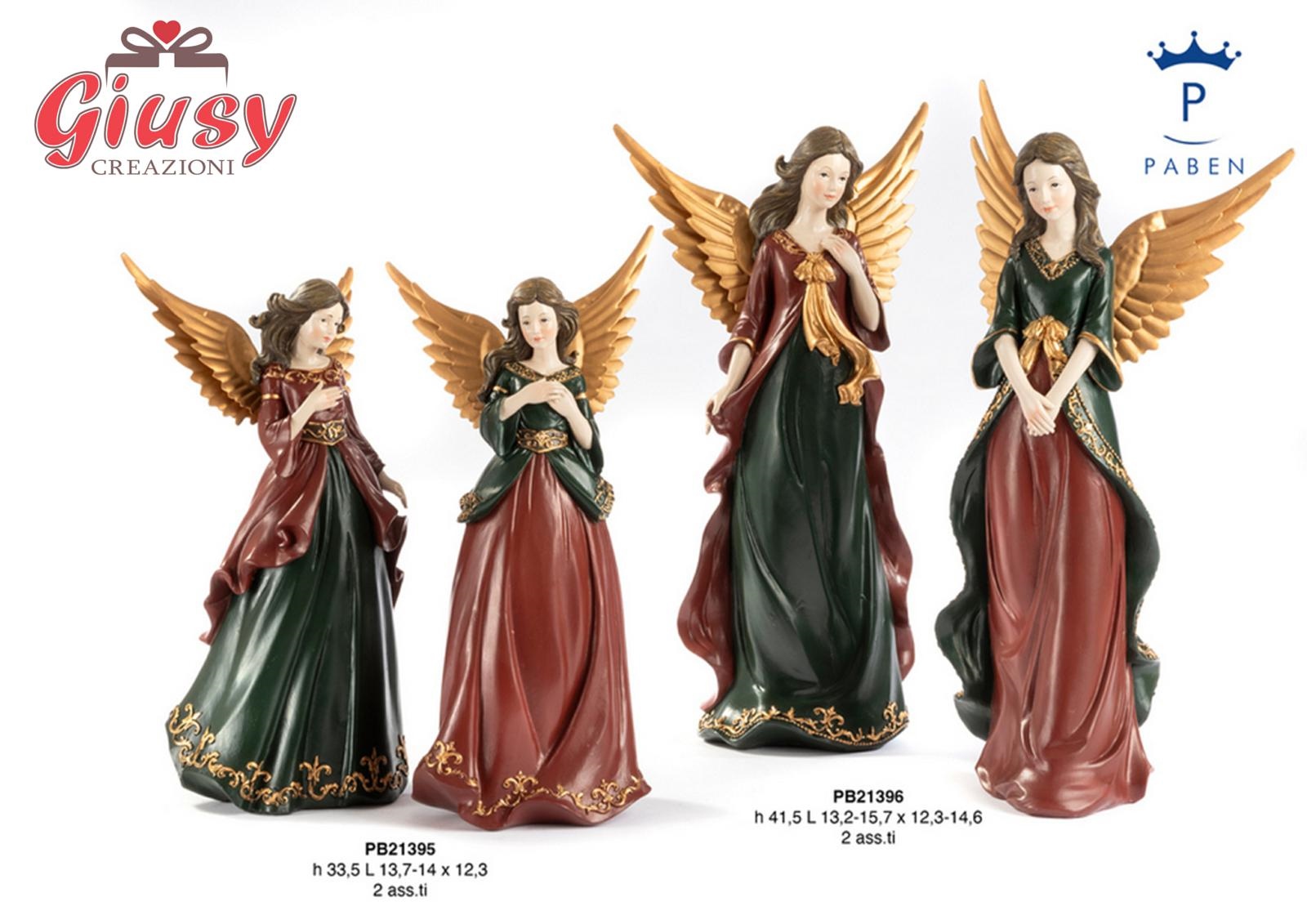 Angelo In Resina Con Ali Metallo 2 Soggetti Assortiti H.33,5 Cm 2*8