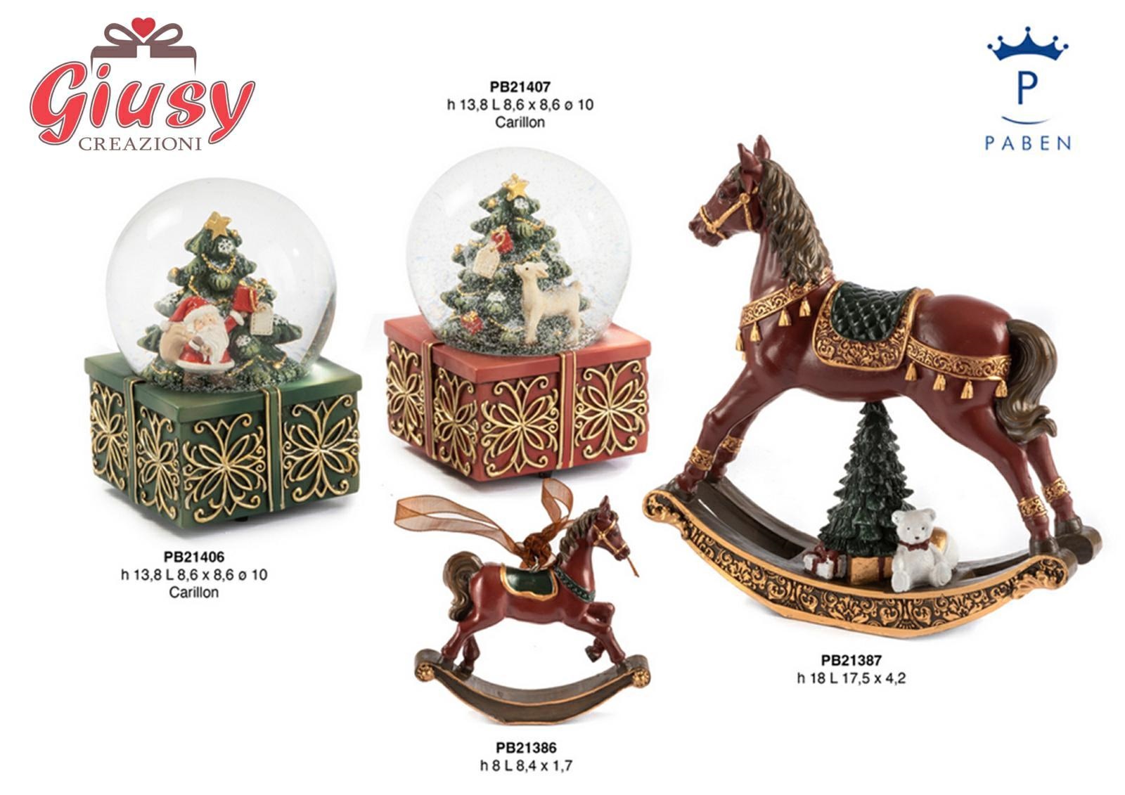 Appendino Cavallo A Dondolo Natalizio In Resina H.8 Cm 12*72