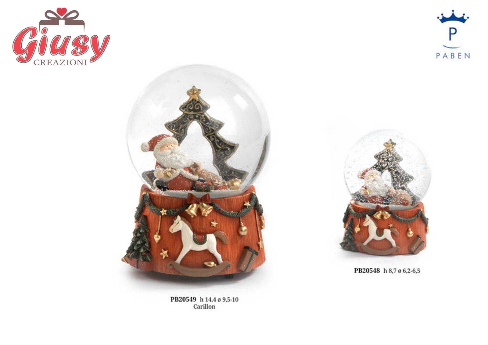 Carillon Globo In Vetro Con Albero E Babbo Natale In Resina H.14,4 Cm 3*12