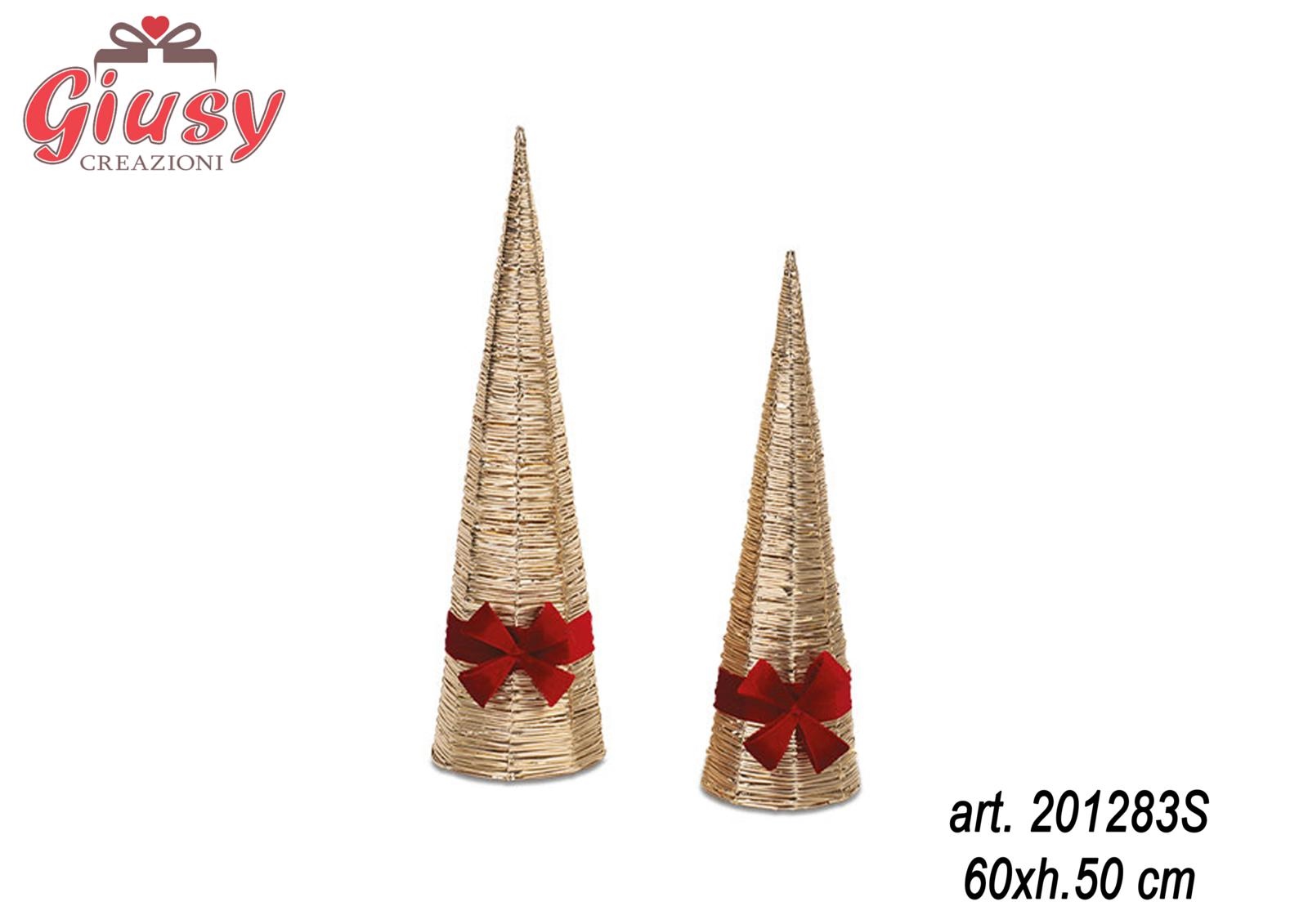 Set Due Coni Oro Con Fiocco Rosso A Led, 60XH.50 Cm 2*12