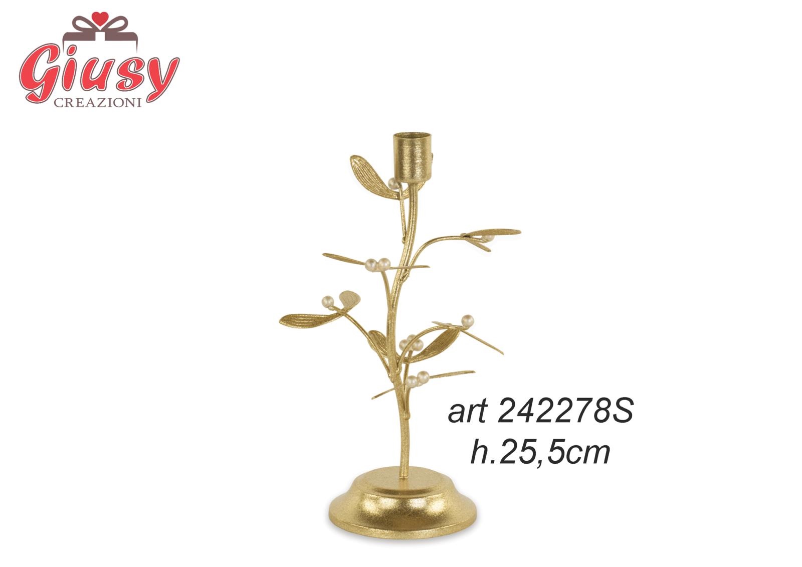 Portacandela Vischio In Metallo Color Oro H.25,5 Cm 1*16