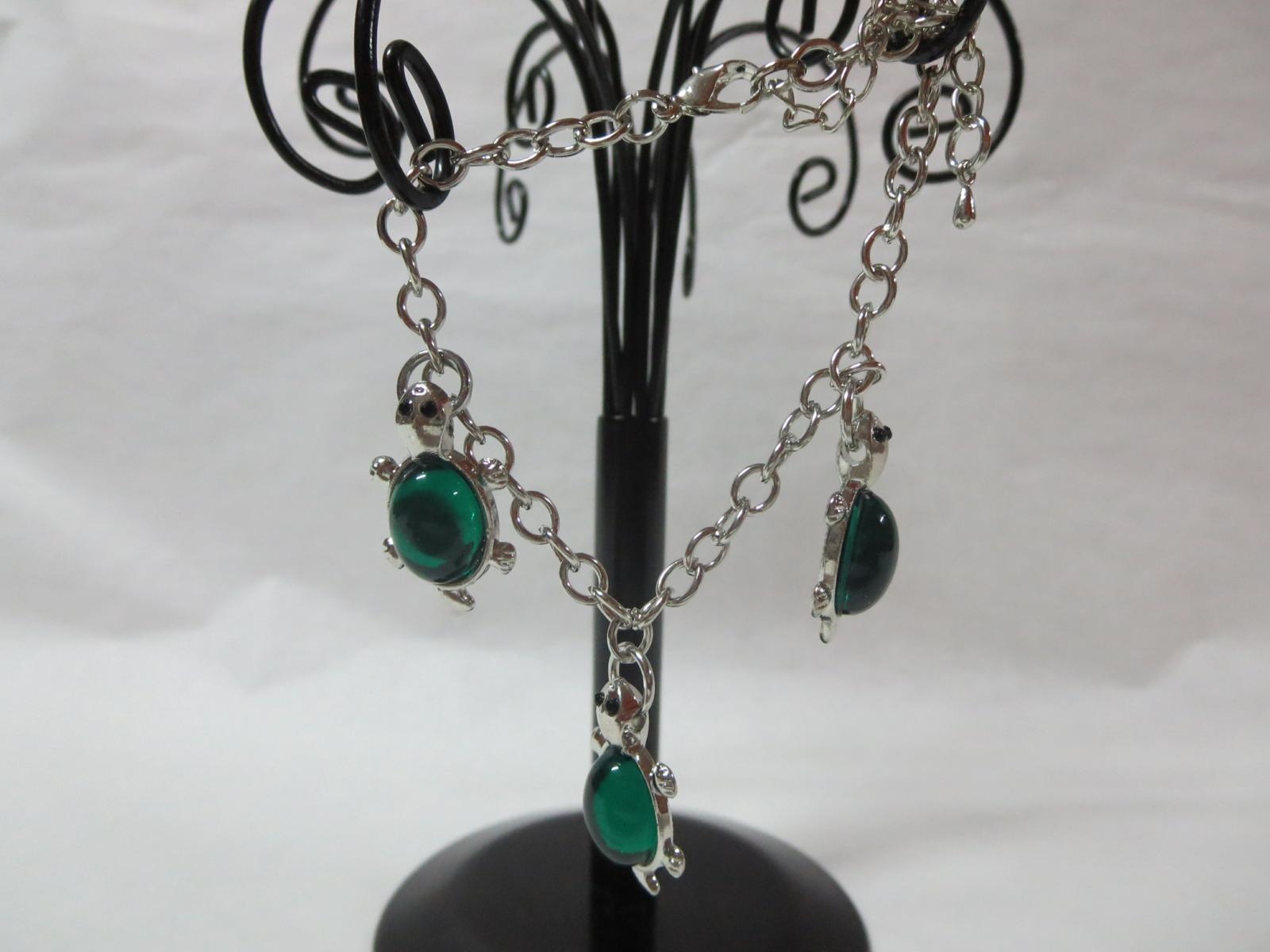 Bracciale Metallo Tris Tartaruga Con Pietra Verde Cm 10