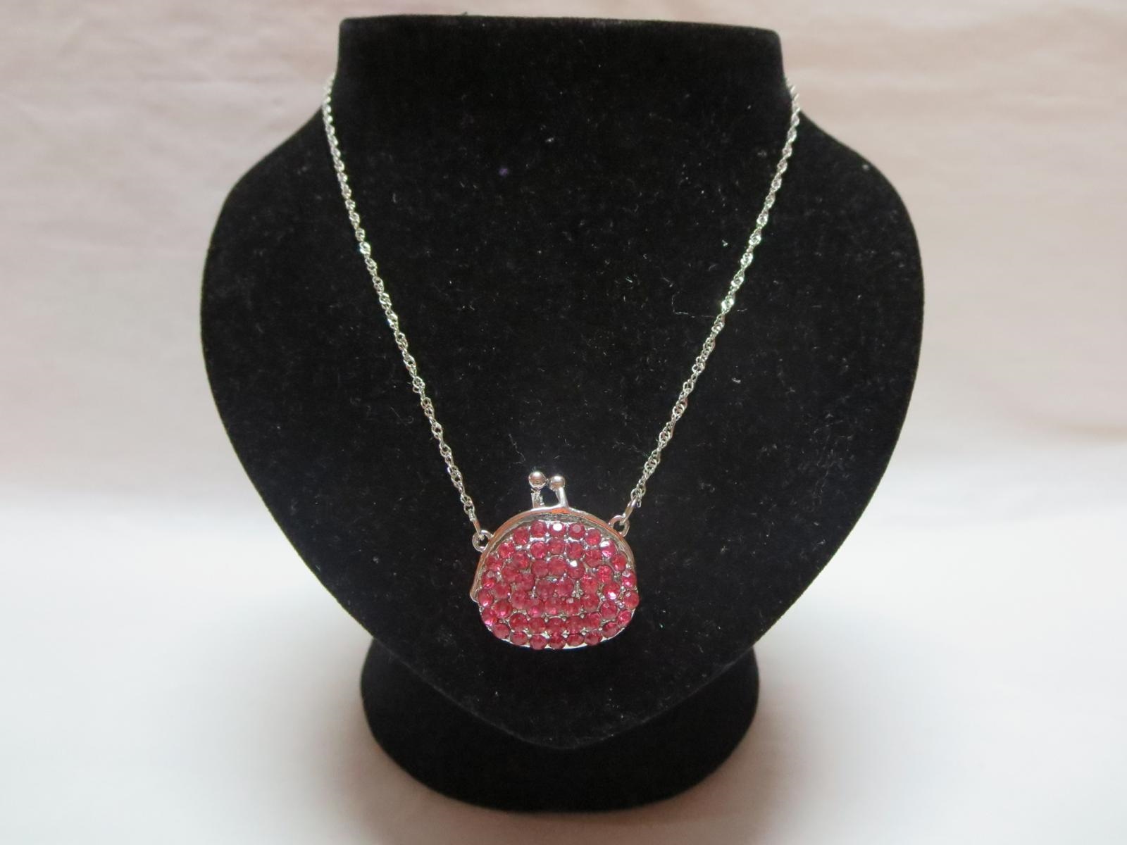 Collana Metallo Borsa Con Strass Fuxia Cm 10X3