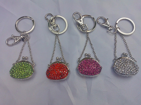 Portachiavi Borsetta Argentata Con Strass Fuxia Quantita' Minima Pezzi 10 Cm 10X3