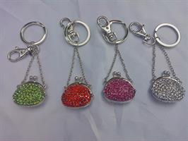 Portachiavi Borsetta Argentata Con Strass Verdi Quantita' Minima Pezzi 10 Cm 10X3