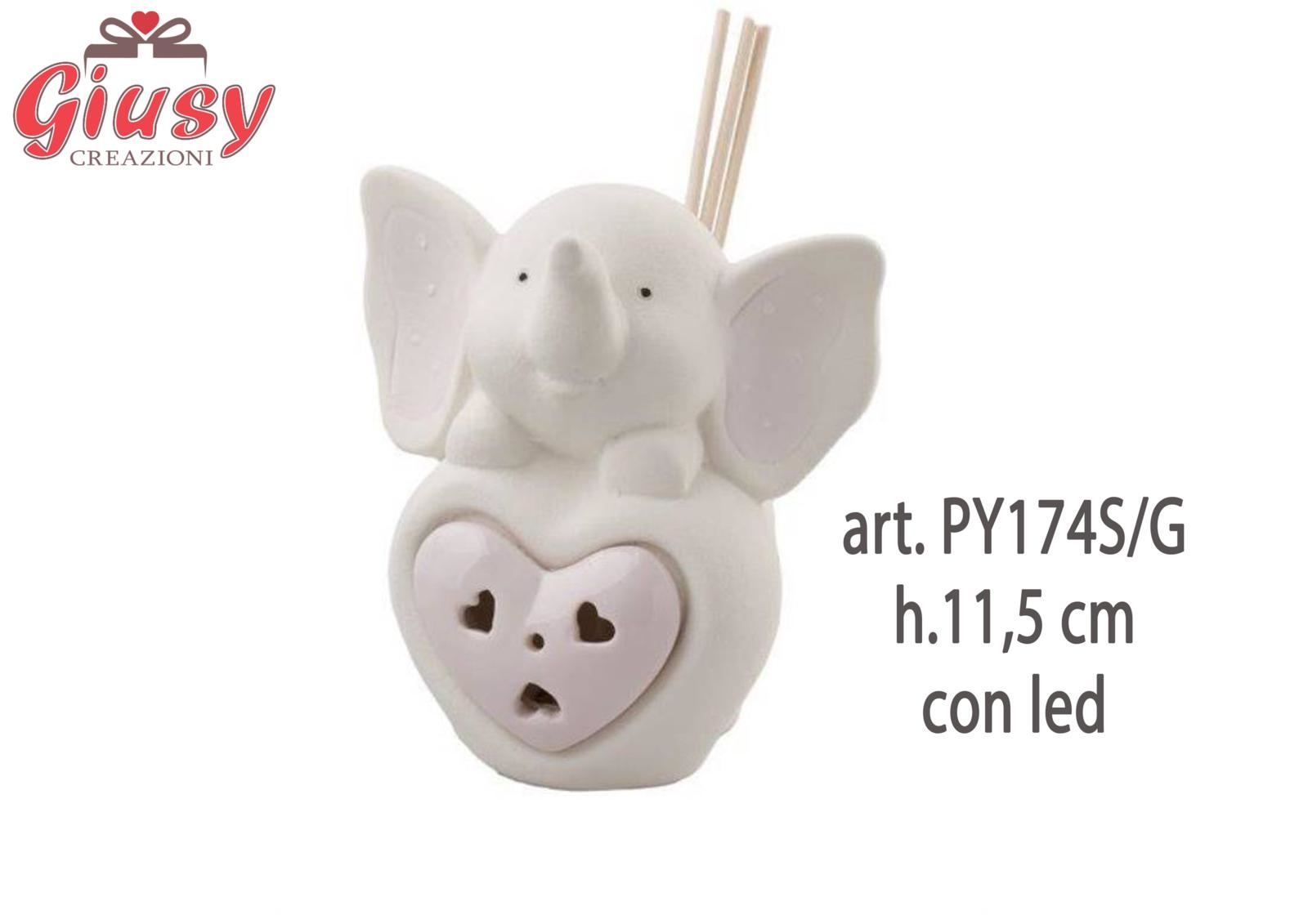 Profumatore Elefante Girl In Porcellana Con Led H.11,5 Cm Completo Di Scatola 1*24