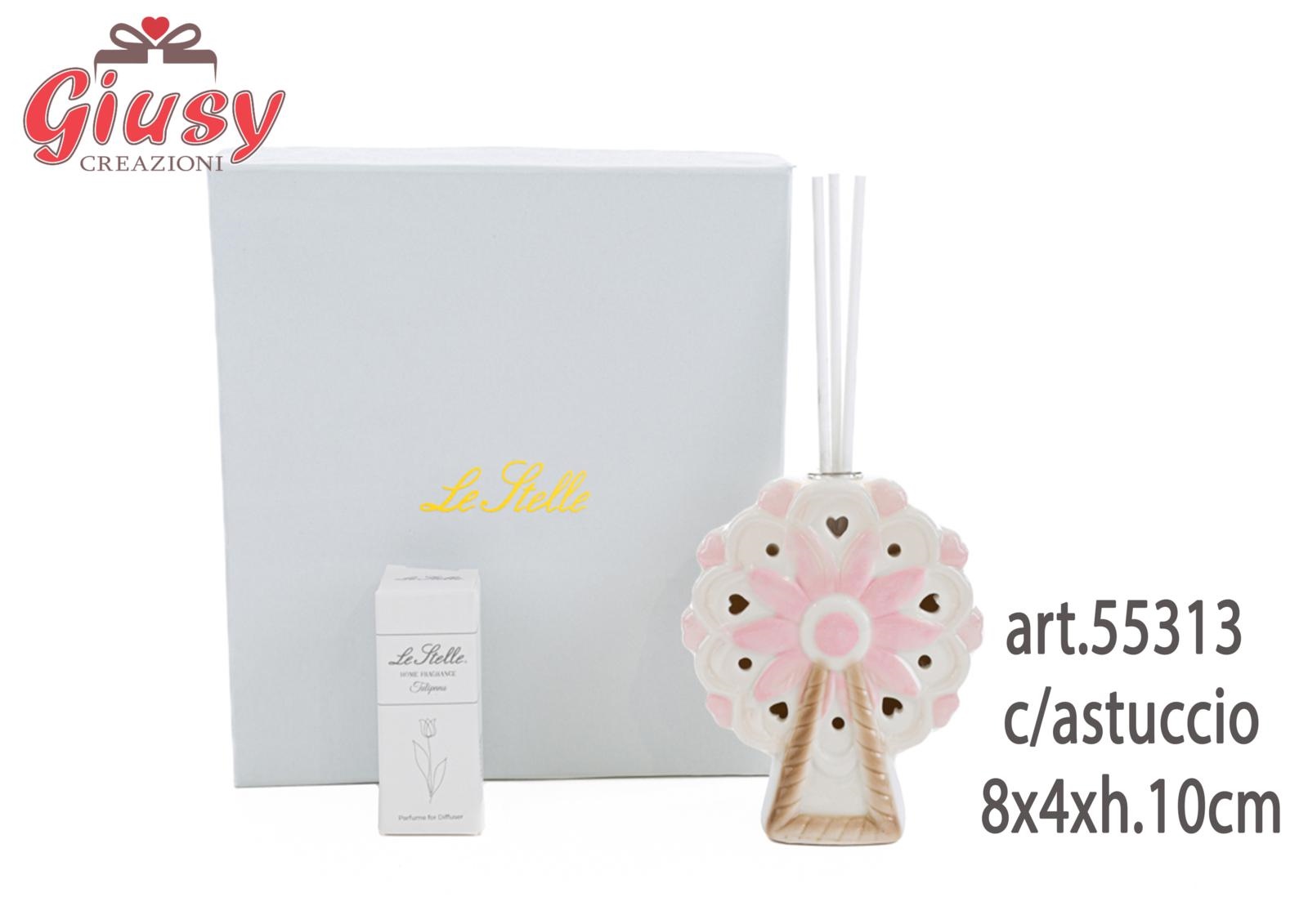 Profumatore Ruota Panoramica In Porcellana Rosa 8x4xh.10 Cm Completo Di Astuccio Ed Essenza 1*48