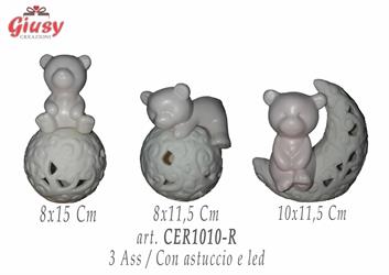 Animaletti In Ceramica 3 Soggetti Assortiti Con Led 8x15 Cm / 8x11,5 Cm / 10x11,5 Cm