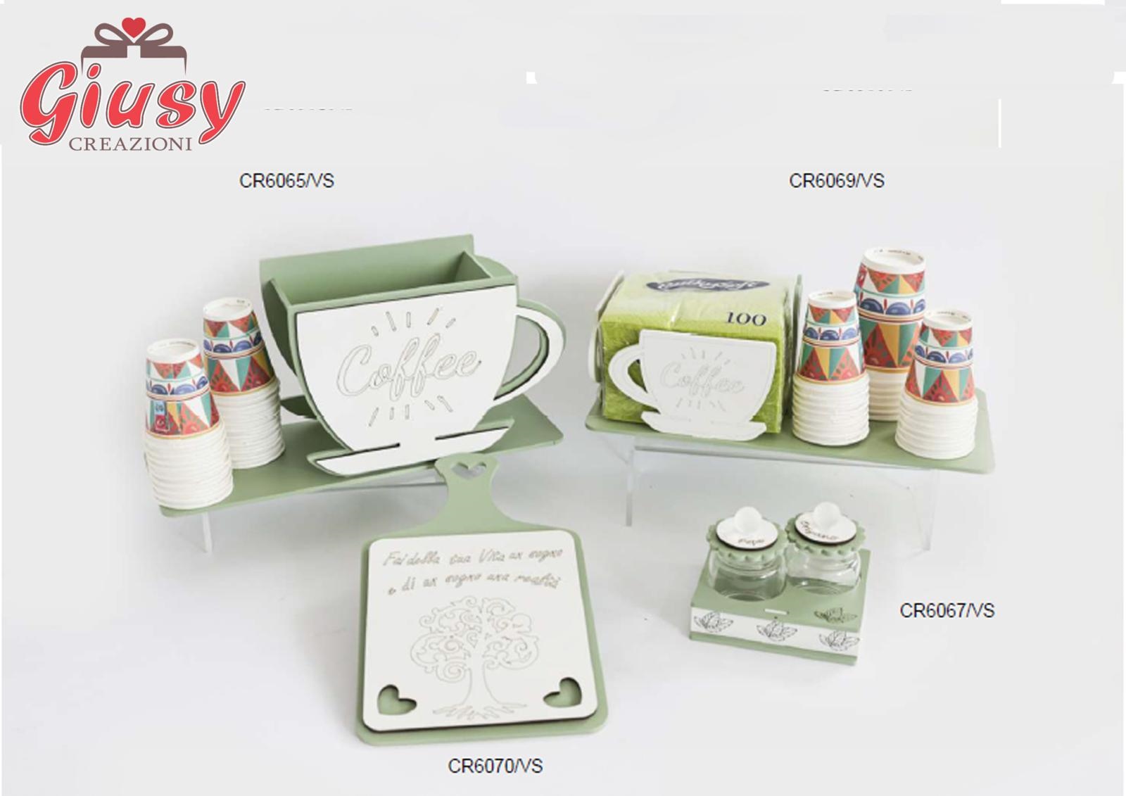 Portacialde E Porta bicchierini Da Caffè In Legno Color Verde Sabbia Completo Di Scatola 28XH14 Cm
