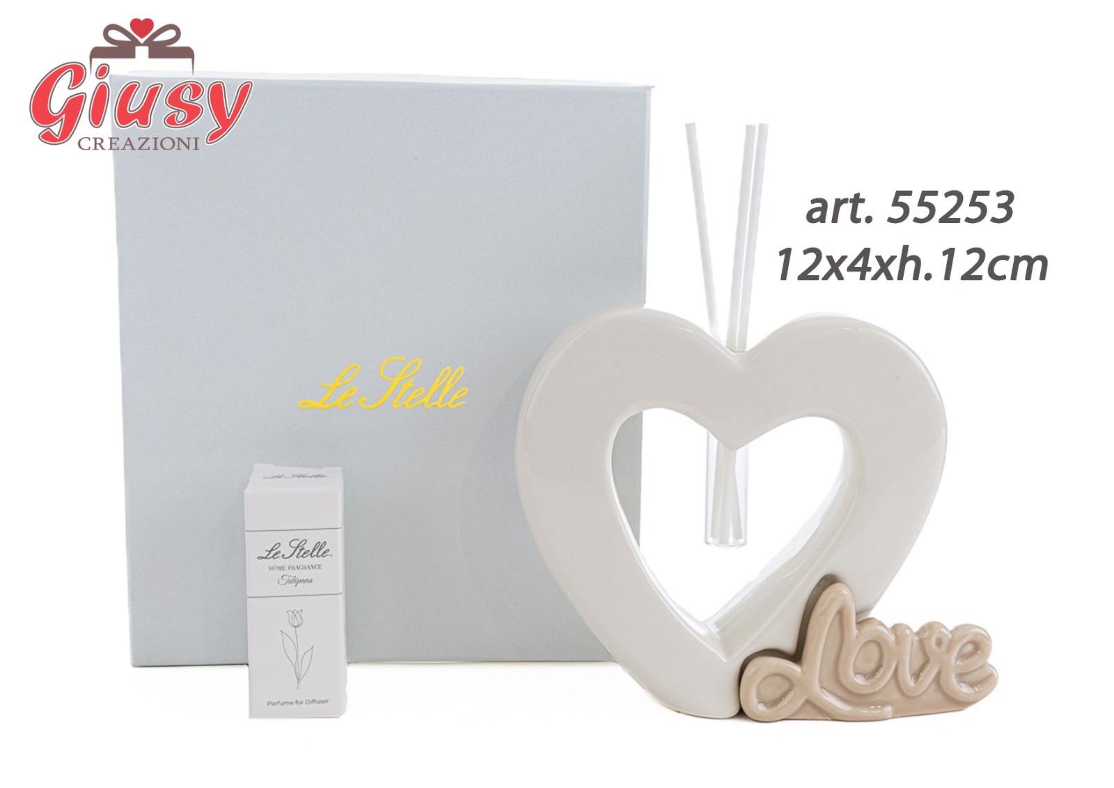 Profumatore Cuore Love Bianco In Porcellana 12x4xh.12cm Con Astuccio Ed Essenza 1*36
