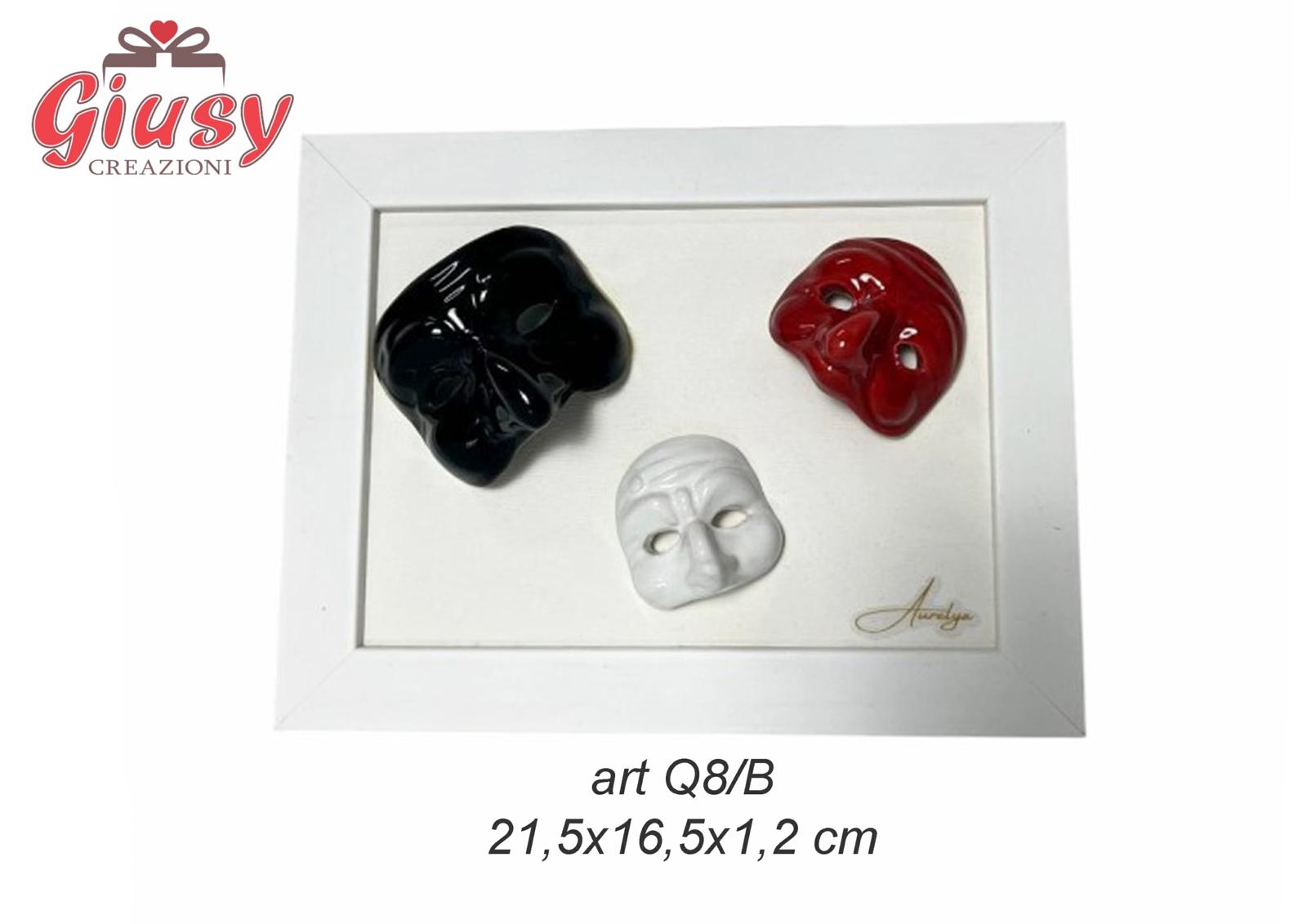 Quadretto Cornice Bianca 21,5X16,5X1,2 Cm Con Tre Maschere Pulcinella Completa Di Scatola