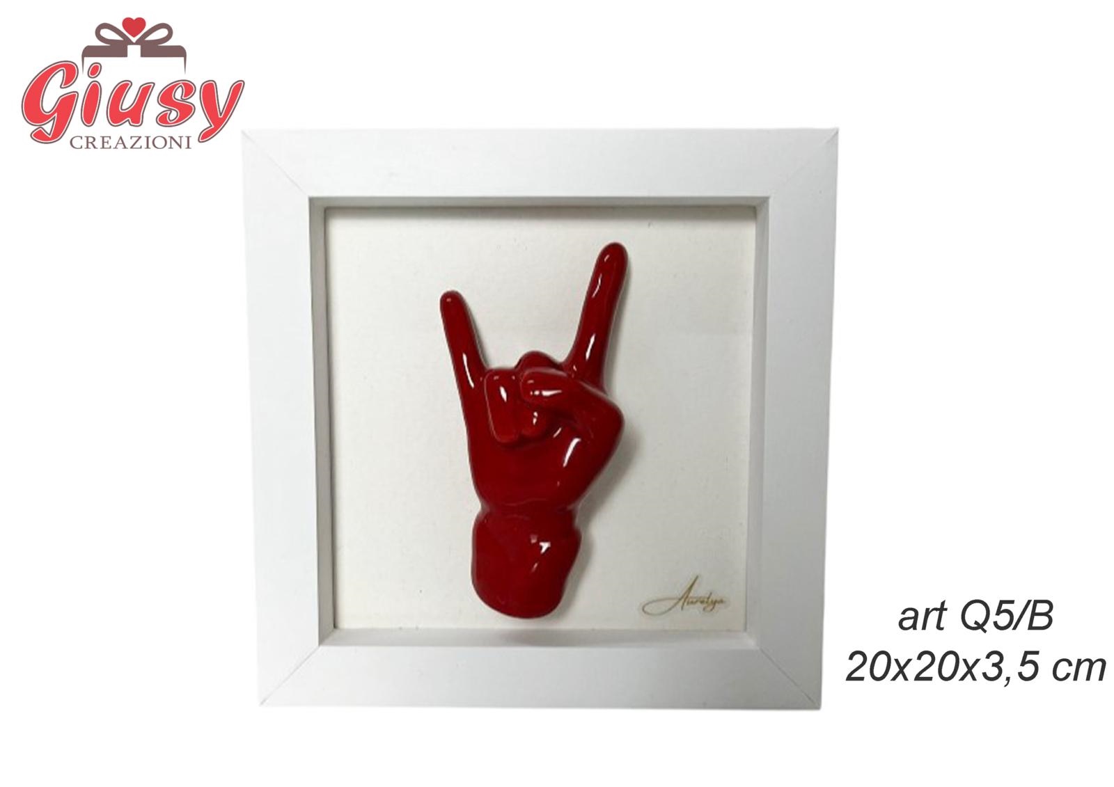 Quadretto Cornice Bianco 20X20X3,5 Cm Con Mano Con Corna Rossa Completa Di Scatola