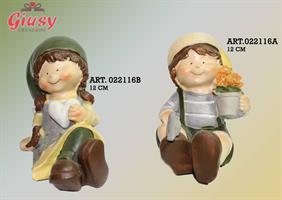 Bimbo Seduto Resina 12 Cm Con Piantina e Uccellino