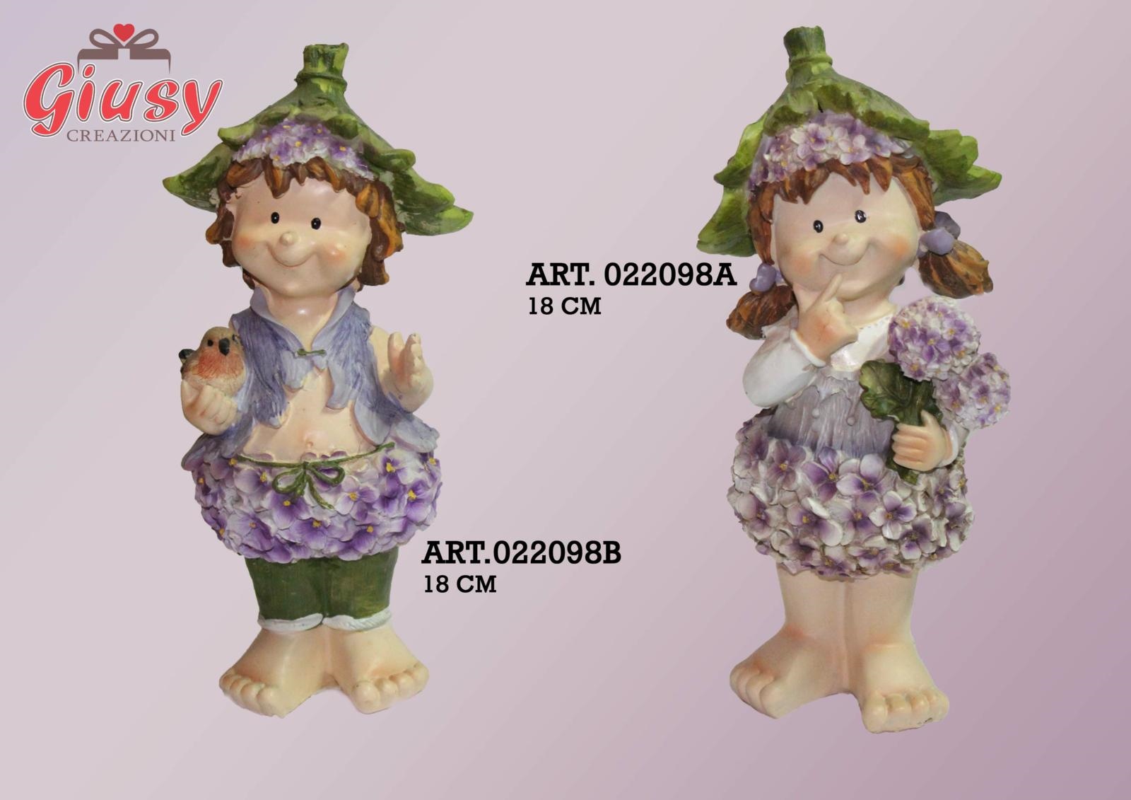 Folletta Glicine In Piedi Resina 18 Cm Con Fiori Ortensia