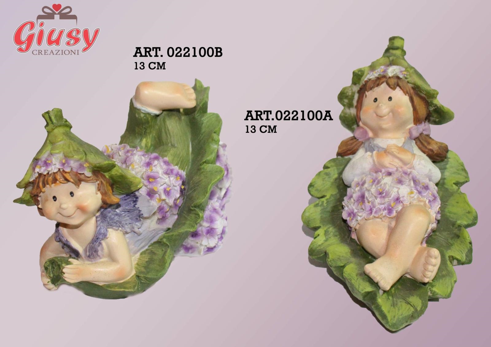 Follettina Glicine 13 Cm In Resina Su Foglia Di Ortensia