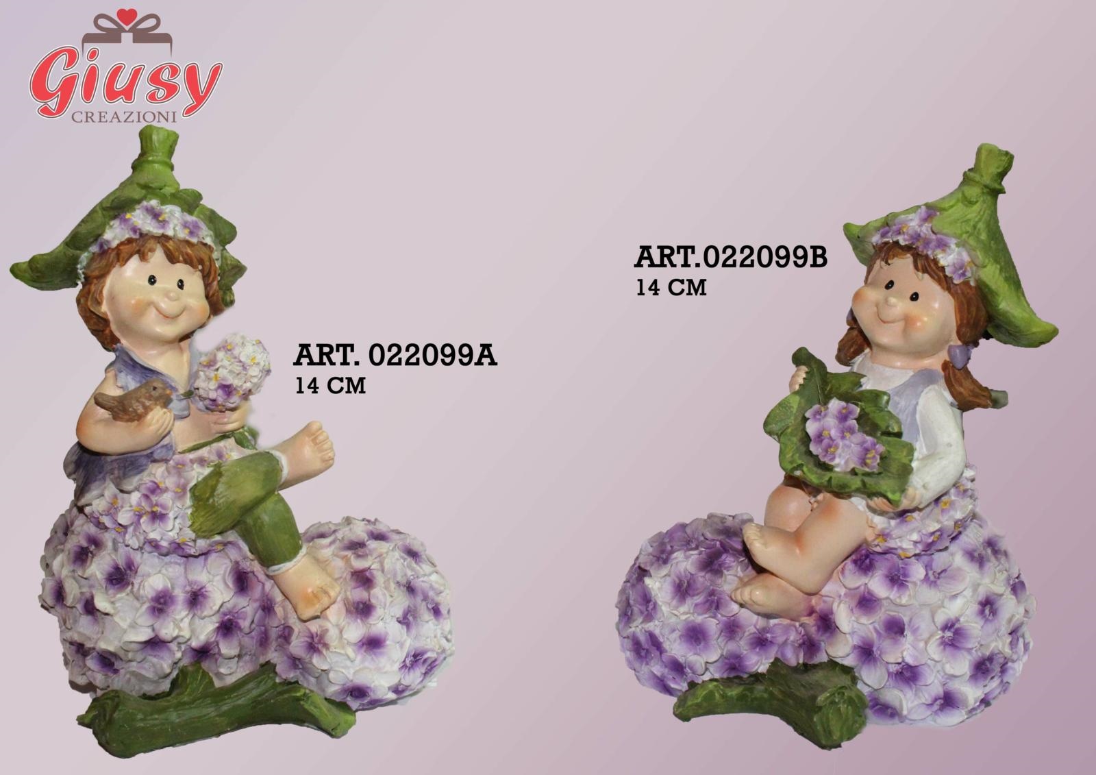 Follettina Glicine 14 Cm In Resina Seduto Su Ramo Ortensia