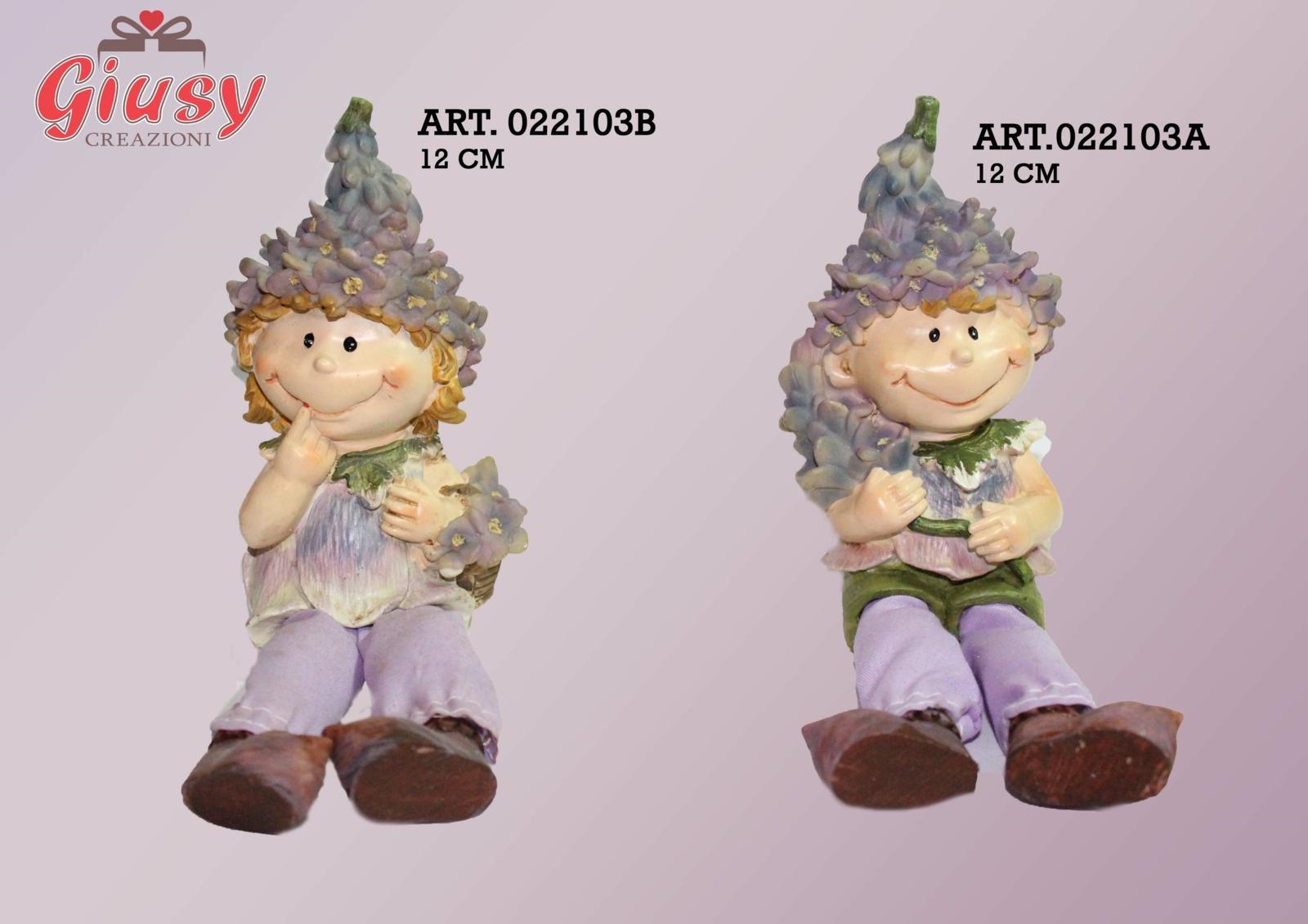 Folletto Glicine Cm 12 In Resina Con Fiori Ortensia