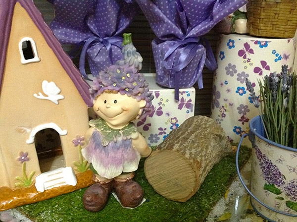 Folletto Glicine In Piedi Resina 20 Cm Con Fiori Ortensia