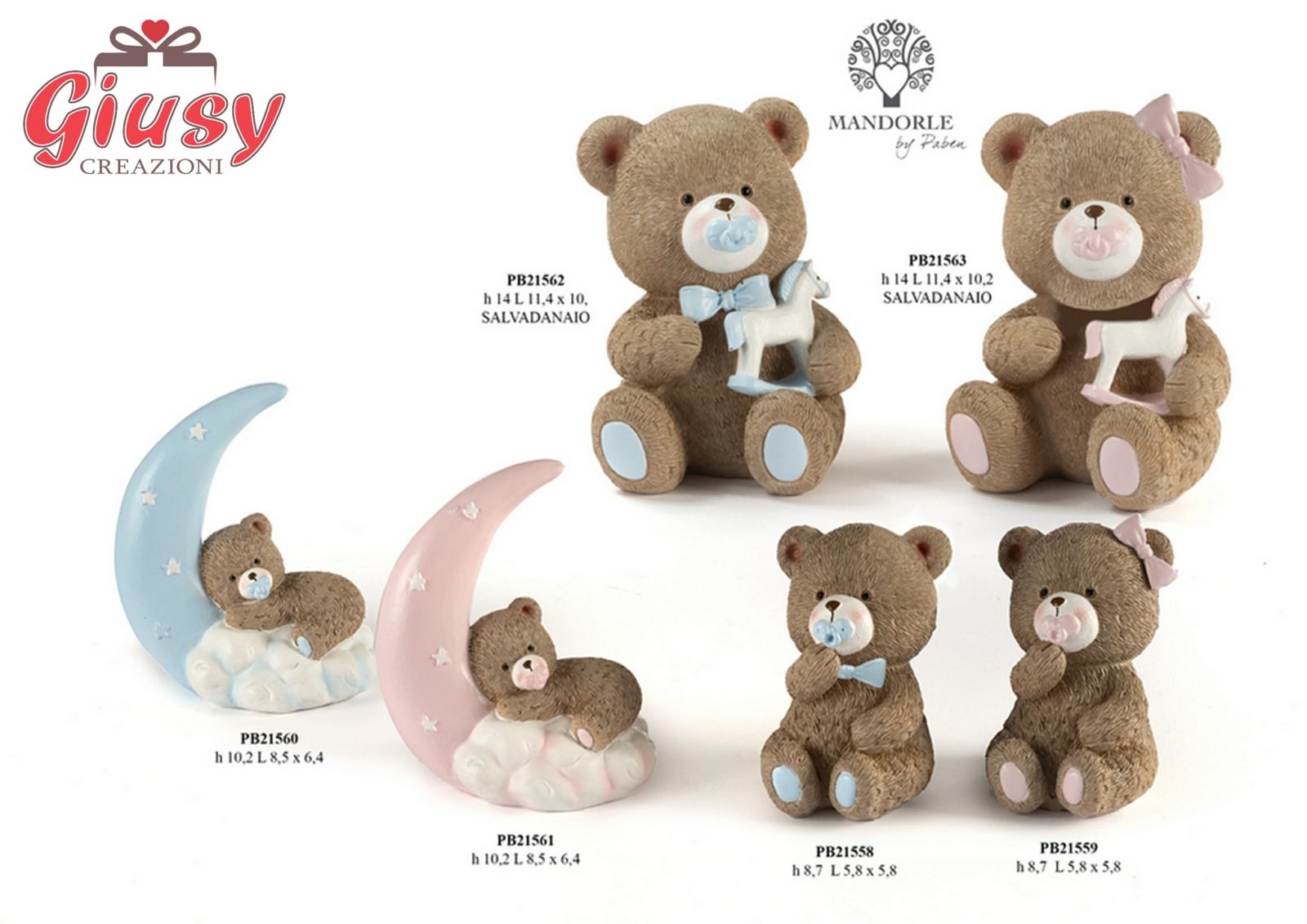 Salvadanio Orsetto Seduto Con Ciuccio Celeste In Resina 14 Cm 2*18