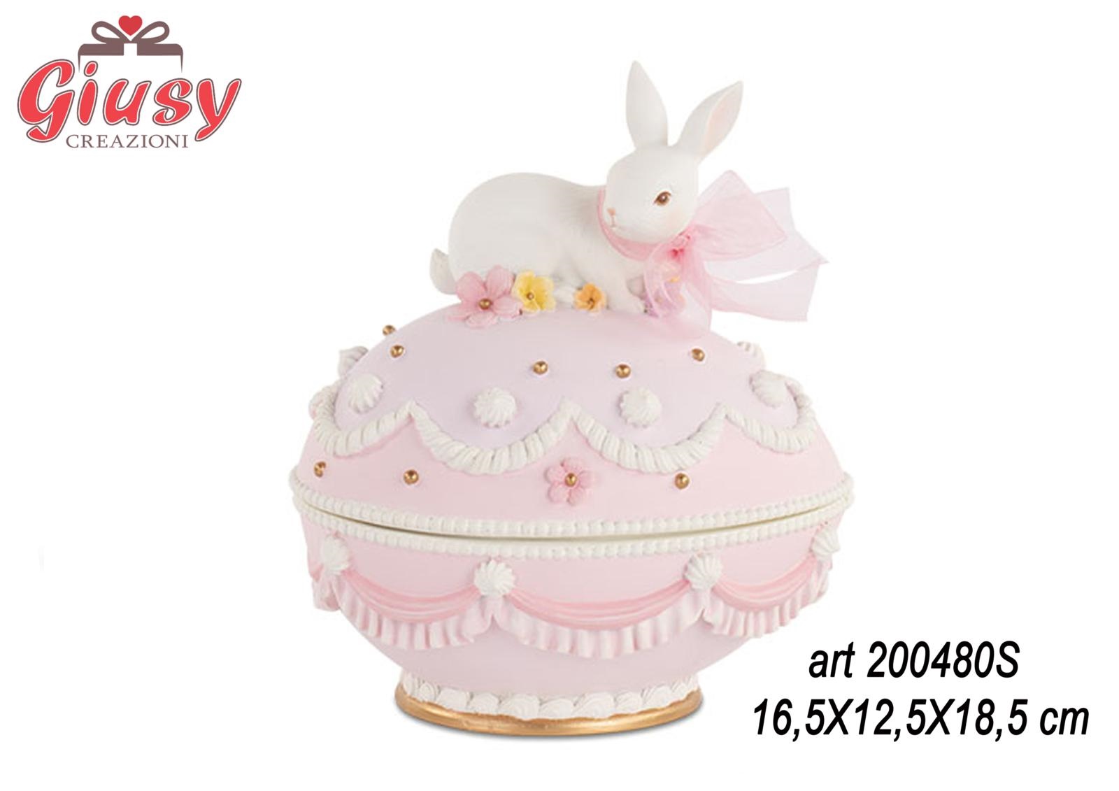 Scatola Uovo Con Coniglio Colore Rosa In Poliresina 16,5X12,5X18,5 CM 2*8