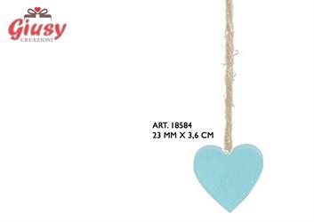 Cuore Legno Azzurro Con Spago 2,3 Cm