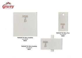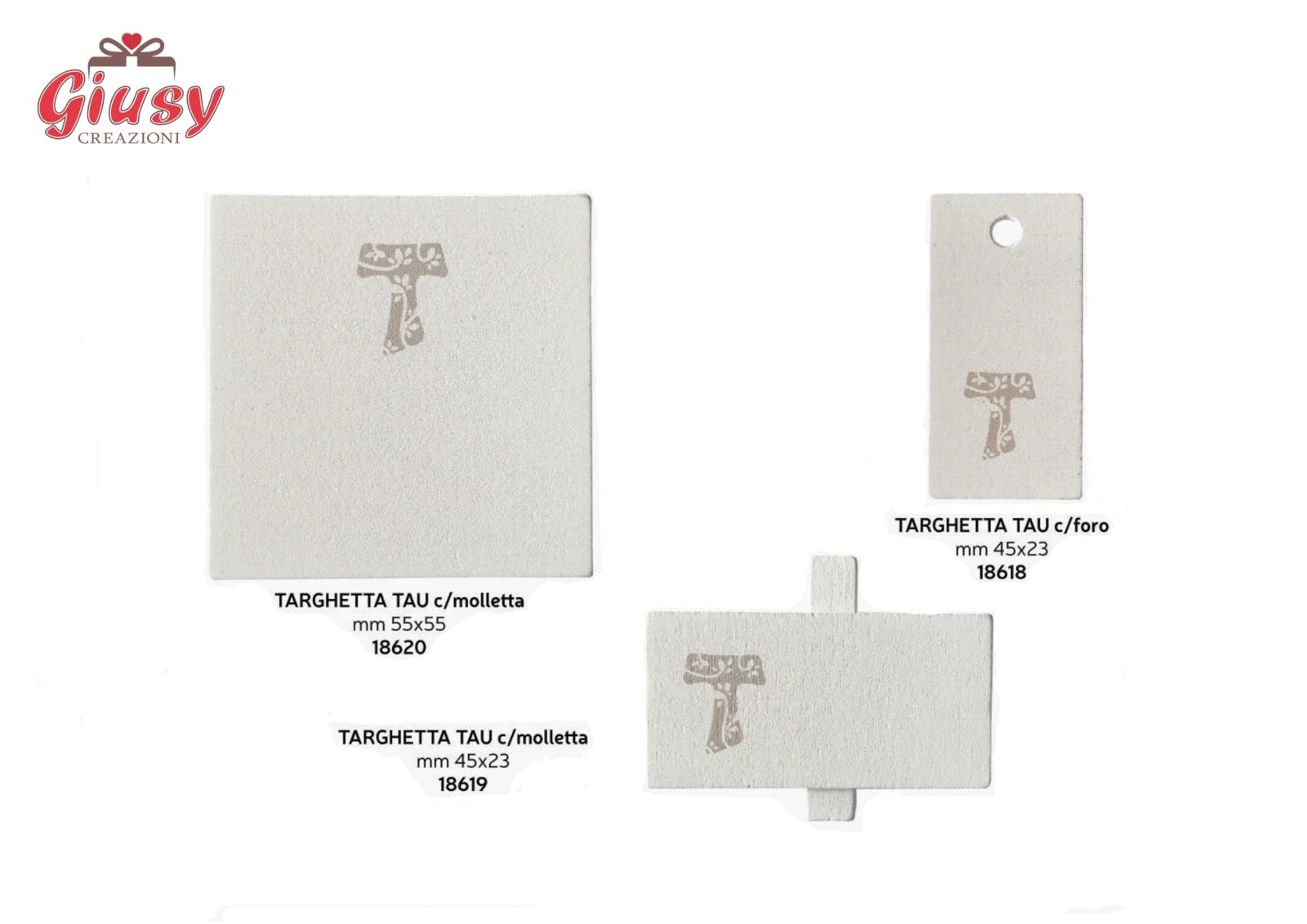 Tarchetta Bianca In Legno Con Decoro Tau 4,5x2,3 Cm