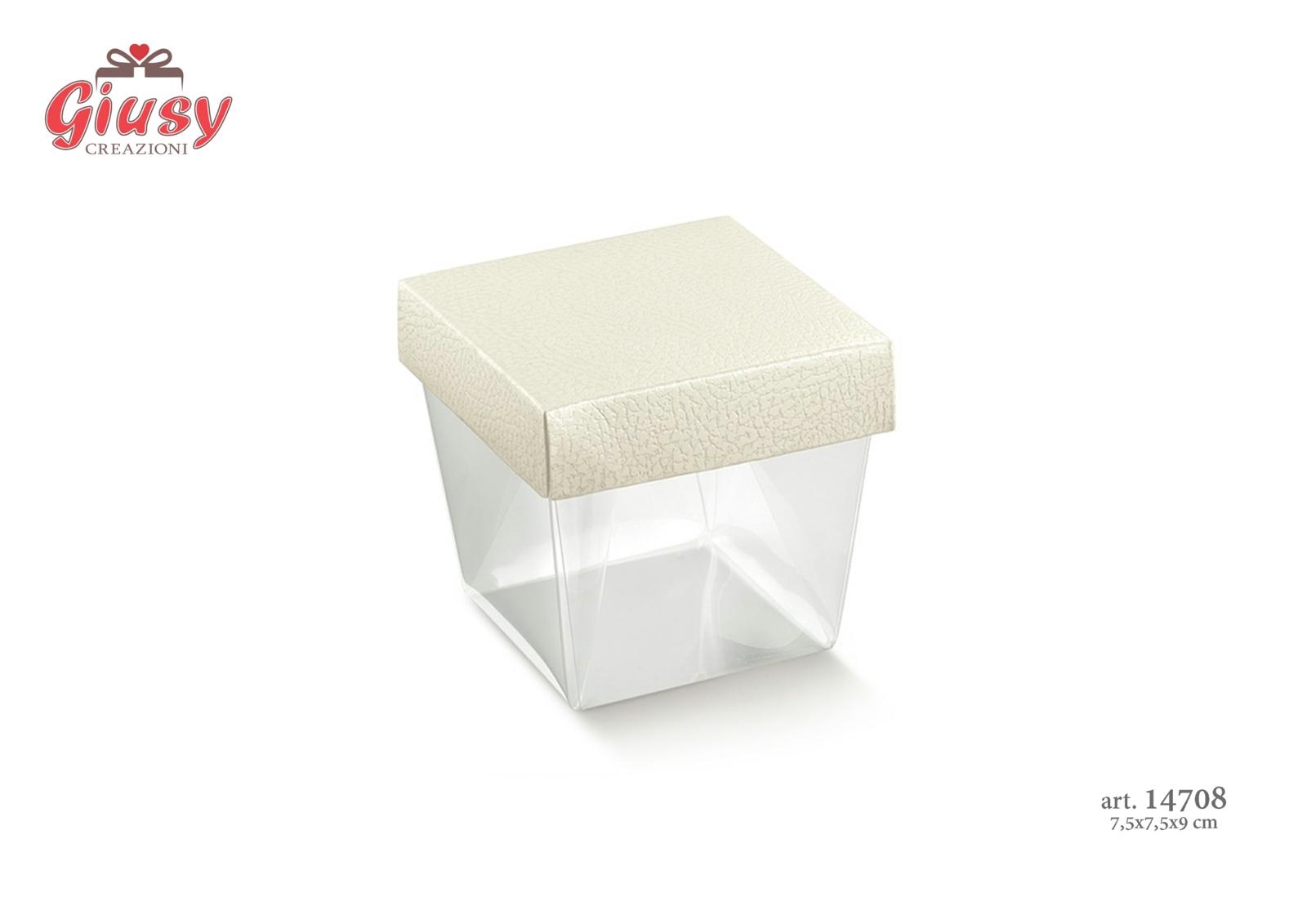 Scatola Coppetta In Cartoncino Decoro Pelle Bianca 7,5x7,5x9 Cm
