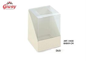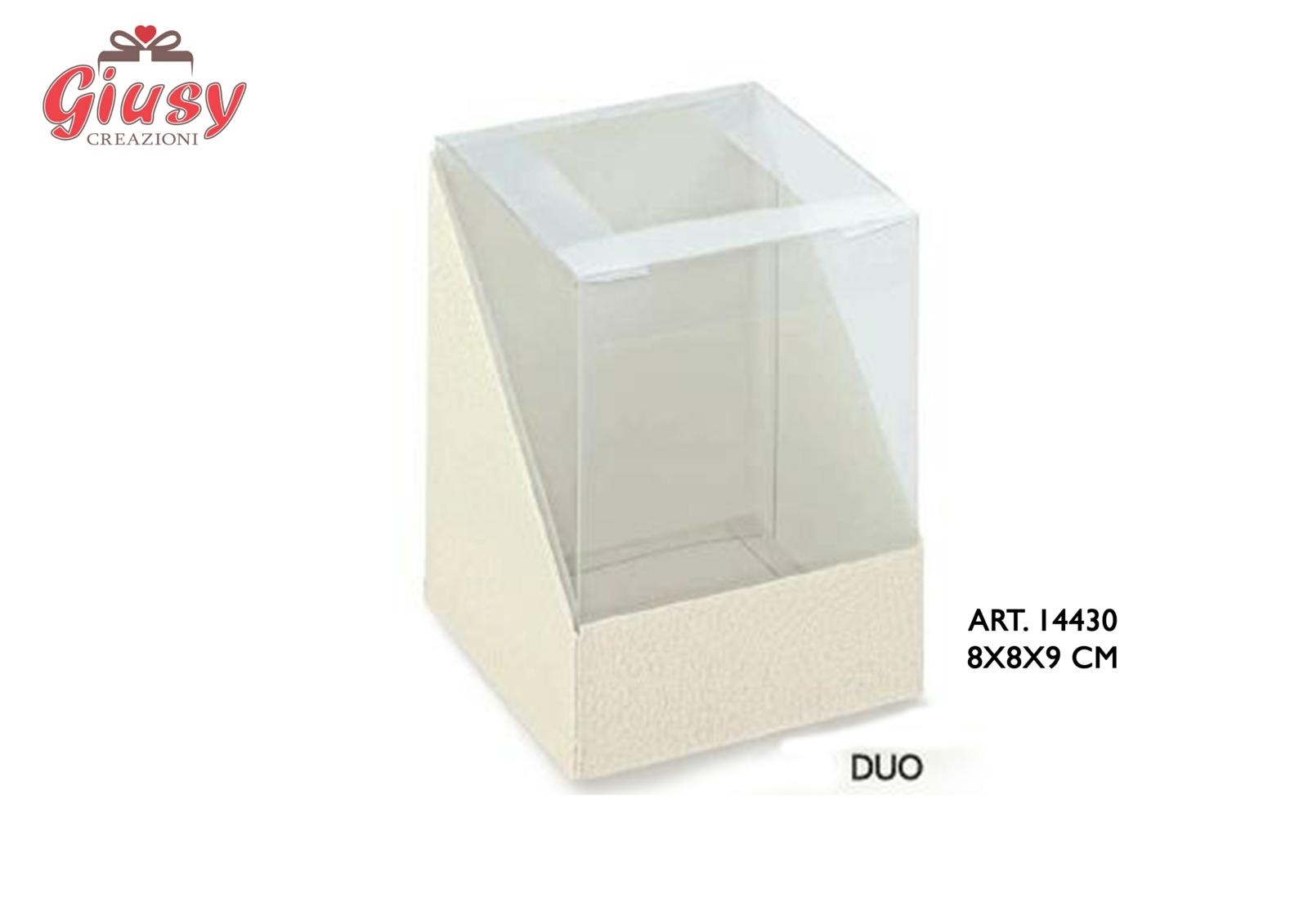 Scatola Duo In Cartoncino Decoro Pelle Bianca 8x8x9Cm