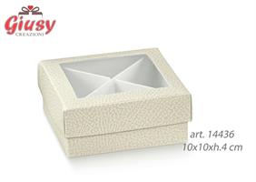 Scatola Fondo e Coperchio In Cartoncino Decoro Pelle Bianca Con Finestra in Pvc + Inserto 10*100
