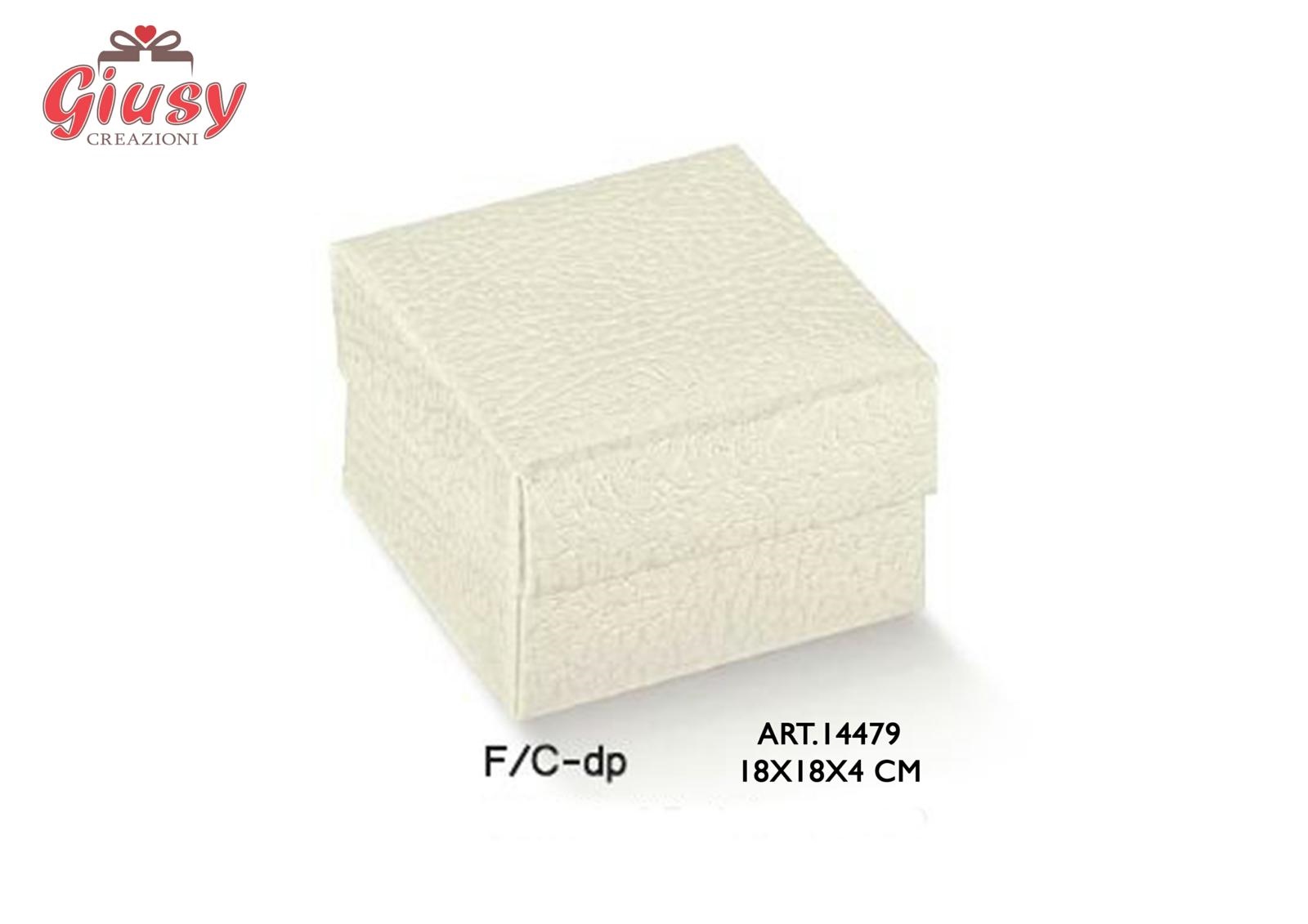 Scatola Fondo E Coperchio In Cartoncino Decoro Pelle Bianca 18x18x4 Cm