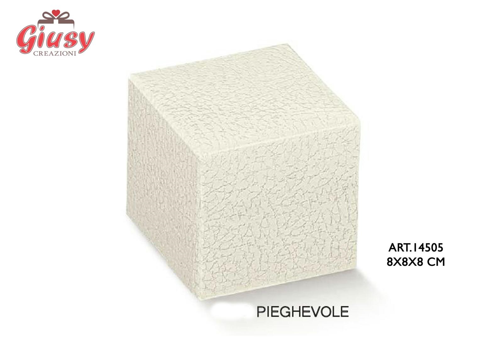 Scatola Pieghevole In Cartoncino Decoro Pelle Bianca 8x8xh.8 Cm 10*200