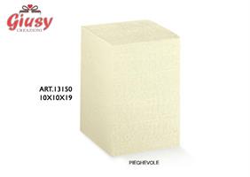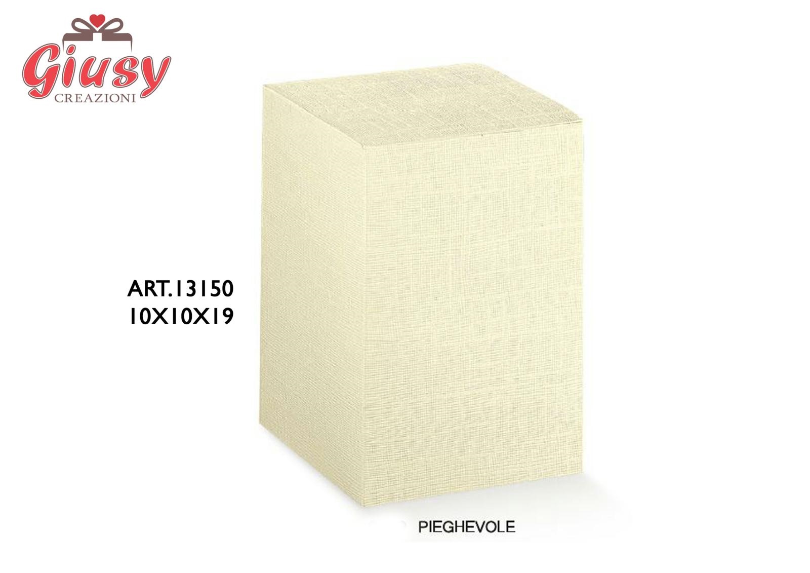 Scatola Pieghevole In Cartoncino Decoro Seta Avorio 10x10xh.19 Cm