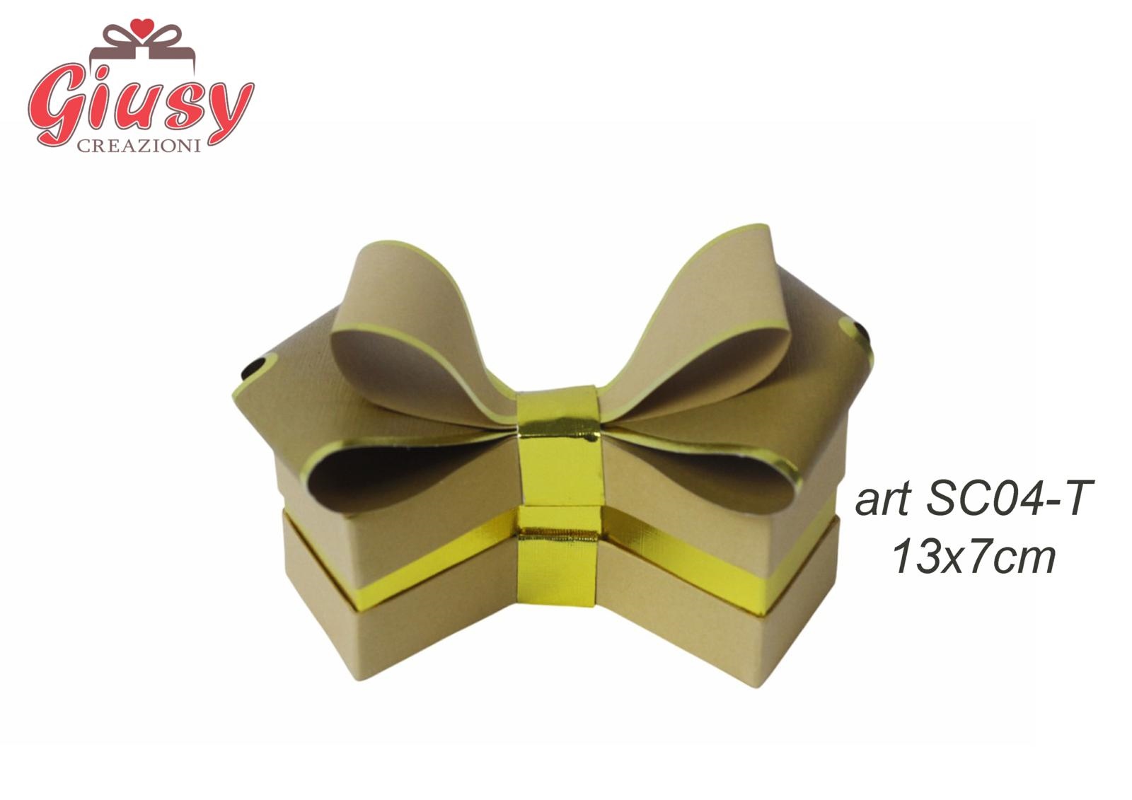 Scatolina Fiocco Fondo E Coperchio Color Tortora Con Dettagli Oro 13x7 Cm 1*100
