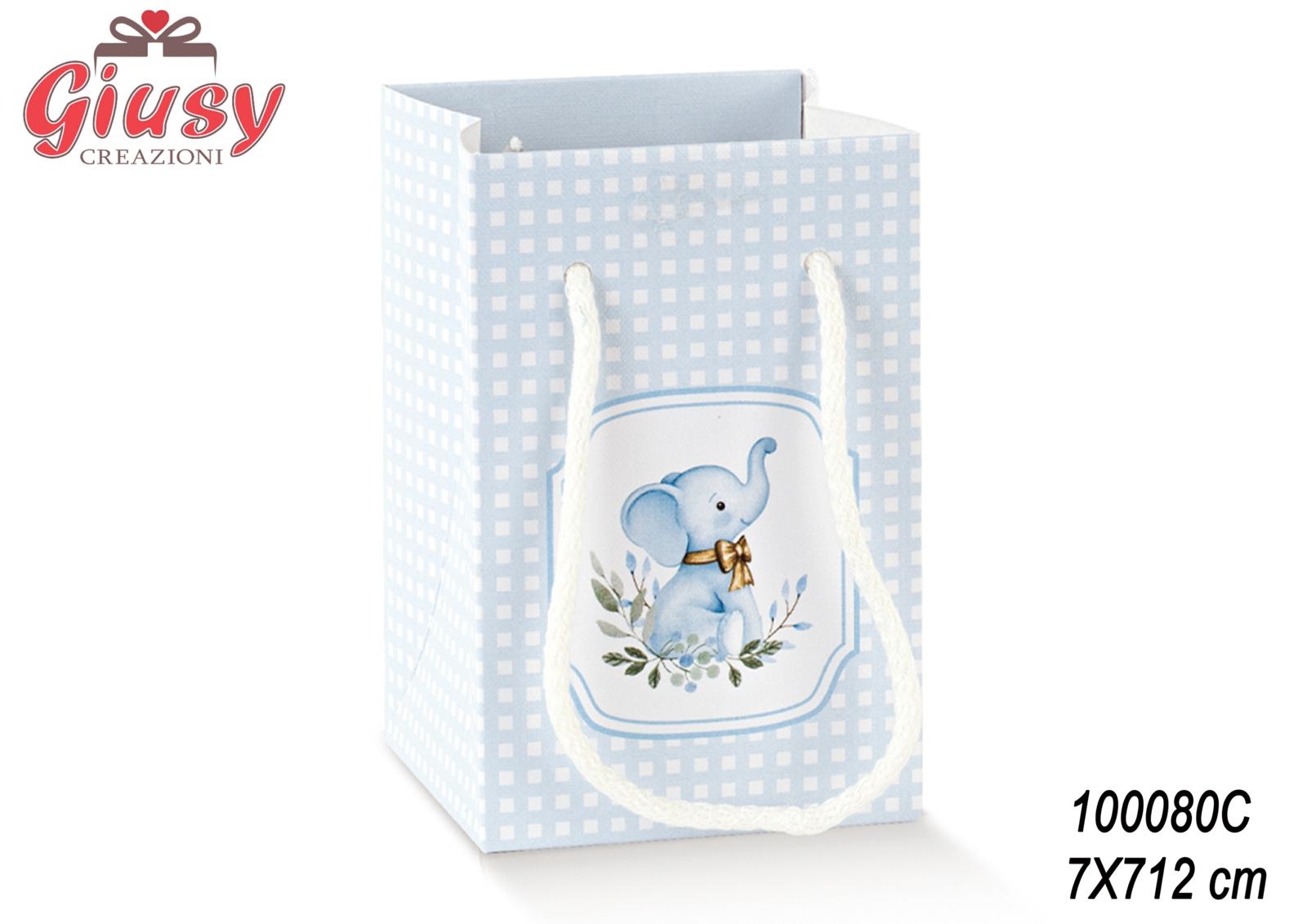 Shopper Box Con Cordini 7x7x12 Cm Decoro Elefantino Azzurro 10*200