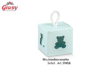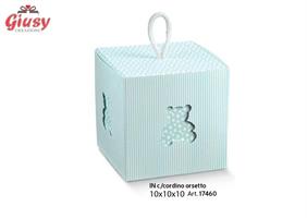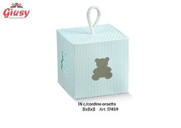 Scatolina Con Cordino Orsetto Millerighe Colore Azzurro 8x8x8 Cm