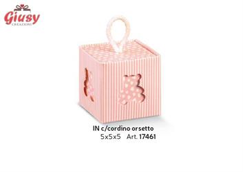 Scatolina Con Cordino Orsetto Millerighe Colore Rosa 5x5x5 Cm