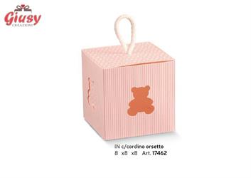Scatolina Con Cordino Orsetto Millerighe Colore Rosa 8x8x8 Cm